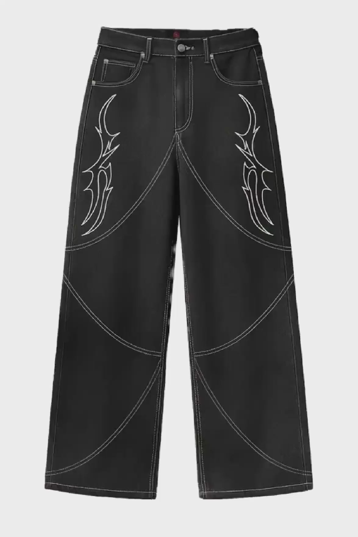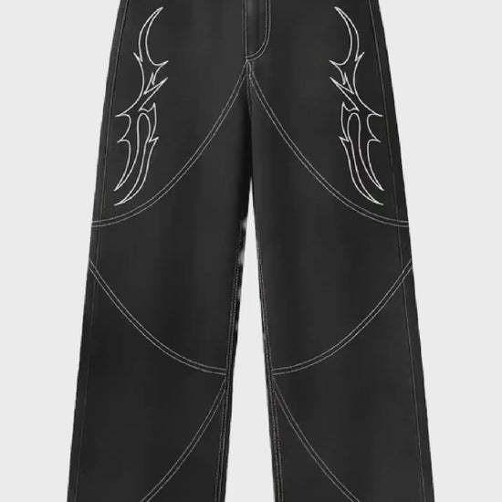 This premium pair marks Blaze's entry into denim — and we're not doing many. Designed with custom curved seamwork, tribal-inspired custom flame embroidery, and a wide-leg silhouette, these jeans bring structure and attitude without saying a word.